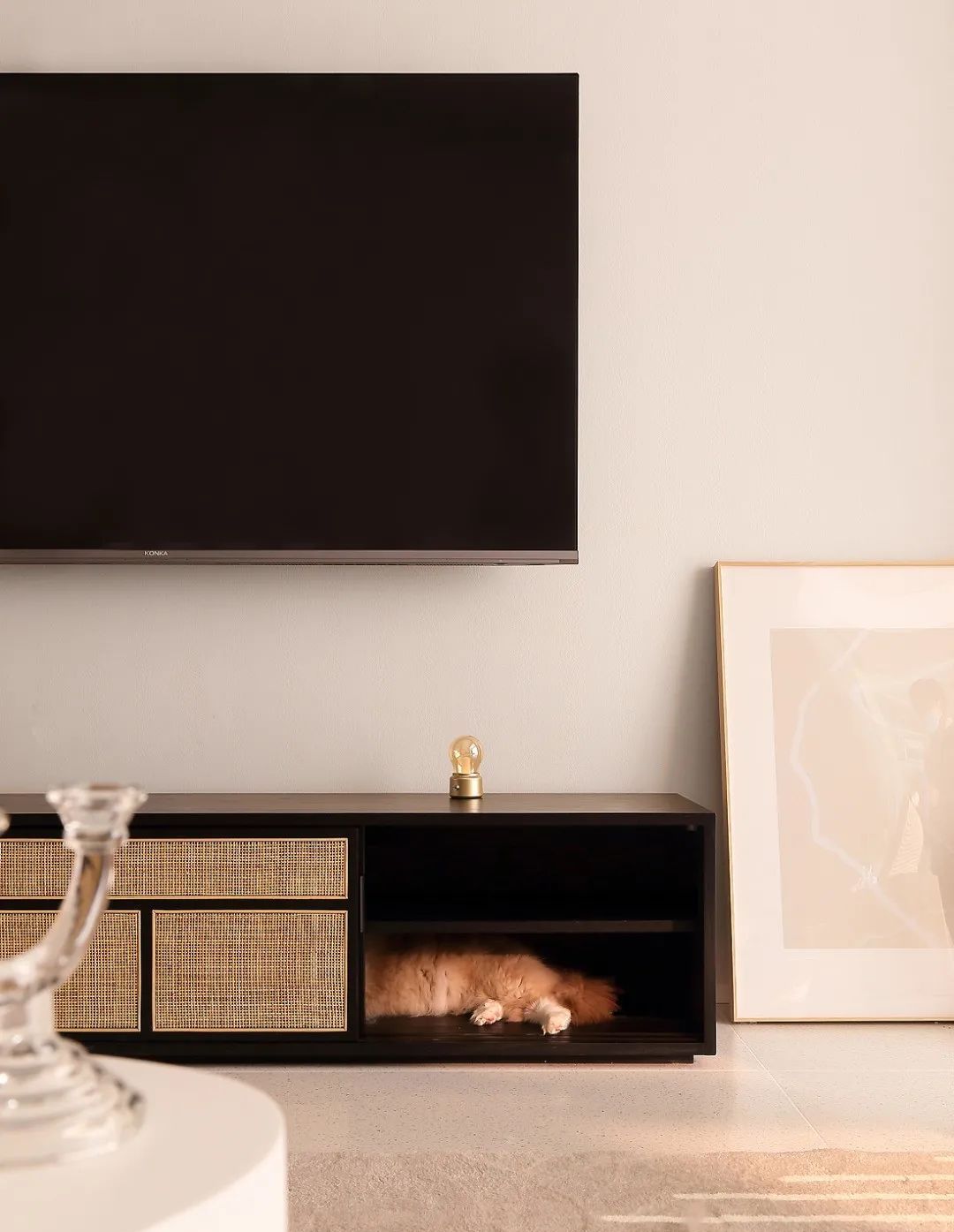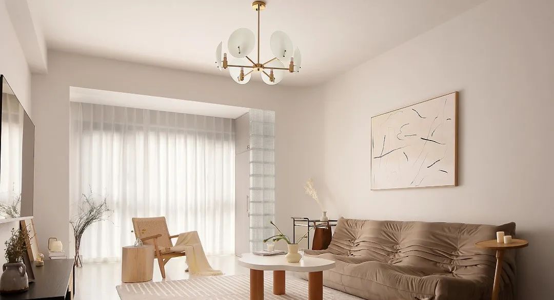 将客厅外的阳台纳入室内,邀阳光清风穿堂入室,让客厅空间看起来宽敞明亮之余,更添宁静雅致的休憩氛围,结束一天的繁忙工作后回到家里,情绪也随之被安抚舒展。