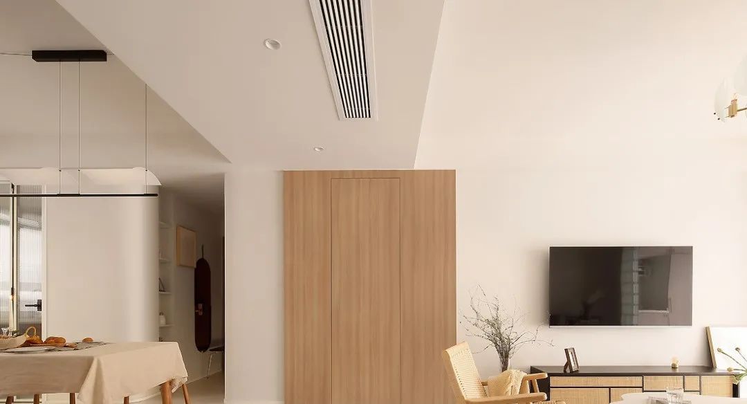 白、木色的搭配,视觉上干净素雅,让家变成最舒适轻松的归属地。空间的采光也极好,加上极其简洁的设计布置也让空间通透无比。